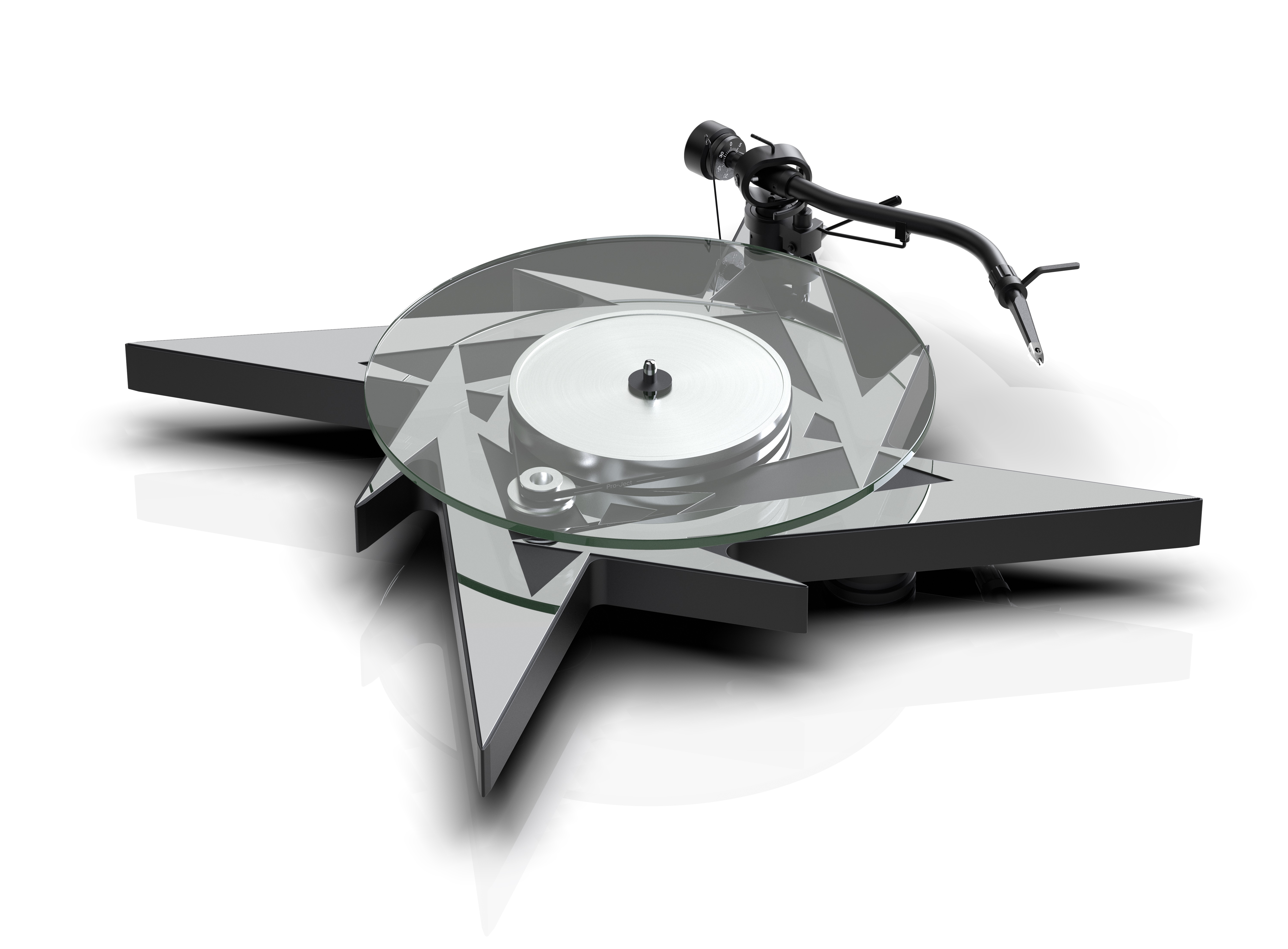 Der gemeinsam mit der Band Metallica entworfene und von Pro-Ject in Europa produzierte Plattenspieler ist die Musikmaschine nicht für Metal-Fans! Der Glasteller erlaubt einen freien Blick auf das ikonische Bandlogo, das die Chassisform dominiert. Eine auf Spiegelglanz polierte und exakt in der Form des Logos geschnittene Metallplatte bringt dem MDF-Chassis zusätzliche Stabilität und amtlichen Metal-Look.